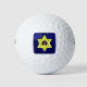Yellow Star of David and Burning Candles Isolated on Blue Snowflakes Background