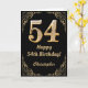 54th Birthday Black and Gold Glitter Frame Card