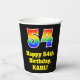 This fun and exciting birthday paper cup design features a large number “54” having a rainbow spectrum gradient inspired pattern. It also features the message “Happy 54th Birthday,”, and a customisable name. It also has a black-coloured background. Vibrant, colourful paper cups like this might be fun to use at a birthday party being held in celebration of somebody’s fifty fourth birthday. [~Z0000537]