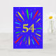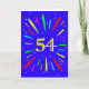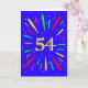 An explosive 54th birthday card! What a wonderful way to send birthday greetings. The number 54 in bright yellow with an explosion of bright colours and stars.
