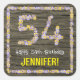 This floral, rustic, nature-inspired birthday themed square sticker design features the message “Happy 54th Birthday,” and a personalised recipient name. The large number “54” and the border feature flower icons. The background has an imitation wood grain look pattern. Stickers like these might be used or given out at a party held in celebration of somebody’s fifty-fourth birthday, or perhaps used when preparing invitations or presents for such an event. [~Z0000654]