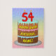 This joyful and fun birthday jigsaw puzzle design features a cartoon-style depiction of a three-tier birthday cake having number-shaped candles on top showing the age “54“, along with the message “HAPPY 54TH BIRTHDAY,”, and a customisable recipient name. The background features a multi-colour pastel rainbow spectrum inspired gradient pattern. A cheerful, personalised birthday puzzle like this might be a fun way to send birthday greetings to somebody who is celebrating their fifty-fourth birthday. [~Z0000621]