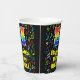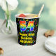 This cheerful and joyful music-themed birthday paper cup design features a large number “54” with a rainbow spectrum gradient inspired pattern, along with the message “Happy 54th Birthday,”, and a customisable name. The background features a vibrant and colourful pattern having music notes and symbols of various sizes and colours. Colourful, vibrant paper cups like this might be fun to use at a birthday celebration being held to honour somebody’s 54th birthday. [~Z0000541]