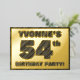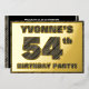 The front of this bold fifty-fourth birthday celebration/party foil invitation card features a personalised name, a large number “54th”, the message “BIRTHDAY PARTY!”, and a border, all featuring a rustic, yet elegant, faux wood grain appearance inspired pattern. The back features personalised details about the event, such as the date, time, venue, and any other important information. Editable invitations like these might be used to invite attendees to a birthday gathering being held to celebrate somebody’s 54th birthday. [~Z0000595]
