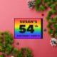 The front of this eye-catching and joyful fifty-fourth birthday celebration foil invitation card design features a custom name, a large number “54th”, the message “BIRTHDAY PARTY!”, and a border. The background of the front features an upbeat, colourful, rainbow spectrum inspired gradient pattern. The back features personalised details about the event, such as the date, time, location, and any other useful information. Personalised invitations like these might be a fun way to invite guests/attendees to a birthday party being held to celebrate somebody’s 54th birthday. [~Z0000599]