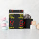 This fun and geeky birthday-themed wrapping paper design features a large number "54" having a red seven segment digital display style look, along with the message "Happy 54th Birthday," and a personalised name in nerdy yellow text, on a black coloured background. Fun wrapping paper like this might be used when wrapping presents being given to somebody in celebration of their fifty fourth birthday. [~Z0000387]