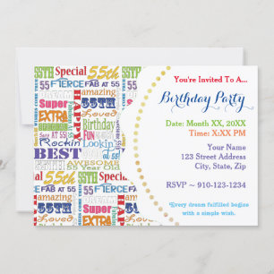 Fabulous at 55 Girly Birthday Purple Glitter Party Invitation