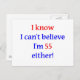 I know, I can't believe I'm 55 either! Humourous design for the 55 year old who knows they don't look 55. Makes a great 55th birthday gift.