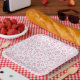 This cool numeric design is a pink and white random number pattern with a pink milestone number 55 repeated in varied sizes and angles over a white background.