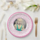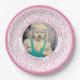 55 Your Photo Random Number Pattern Pink/White Paper Plate
