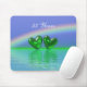 Mousepad with my original image of 2 emerald green hearts floating on the water under a rainbow. Customisable text says "55 Years".