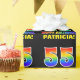 This colourful, cheerful, and fun birthday-themed wrapping paper design features a large number "55" and the message "HAPPY BIRTHDAY,", both having a rainbow spectrum gradient inspired pattern colouring, along with a bold yellow personalised recipient name. The background is coloured black. Fun birthday themed wrapping paper like this might be used when giving a gift or present in celebration of somebody’s fifty fifth birthday. [~Z0000475]