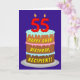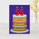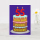 The front of this upbeat and fun birthday themed greeting card design features a depiction of a three-tier birthday cake having number-shaped candles on top showing the age “55“, along with the message “HAPPY 55TH BIRTHDAY,”, and an editable recipient name. The inside has an editable birthday greeting message, or could perhaps be cleared and left blank if a message is to be written by hand instead. A cheerful, customisable birthday greeting card like this might be a fun way to send a birthday greeting message to somebody who is celebrating their fifty-fifth birthday. [~Z0000620]