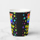 This fun and cheerful birthday paper cup design features a large number “55” having a rainbow spectrum gradient inspired pattern. It also features the message “Happy 55th Birthday,”, and a personalised name. The background features a colourful pattern inspired by a field of stars. Colourful, vibrant paper cups like this might be fun to use at a birthday celebration/party being held in celebration of somebody’s 55th birthday. [~Z0000540]