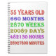 55th birthday counting down the years, days, months, hours, and minutes. A birthday present to give pause for thought! Leap years have been taken into account!