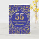 55th Birthday Navy Blue and Gold Floral Pattern Card