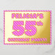 The front of this fun and bold fifty-fifth birthday celebration foil announcement card features a customisable name, a large number “55th”, the message “BIRTHDAY PARTY!”, and a border, all featuring a feminine dark pink and light pink stripes pattern. The back features personalised details about the event, such as the date, time, venue/location, and any other information that may be useful. Customisable invitations like these might be used to invite guests/attendees to a birthday party being held to honour somebody’s 55th birthday. [~Z0000597]