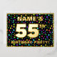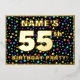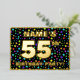 The front of this fun and upbeat fifty-fifth birthday party foil invitation card design features a custom name, a large number “55th”, the message “BIRTHDAY PARTY!”, and a border. The background of the front has an exciting, colourful starfield pattern. The back features personalised details about the event, such as the date, time, place, and any other information that may be useful. Customisable invitations like these might be a fun way to invite attendees to a birthday gathering being held in celebration of somebody’s 55th birthday. [~Z0000600]