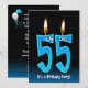 Aqua and blue gradient background with eyeballs on candles for 55th Birthday party invitation.