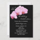 This gorgeous 55th birthday party invitation features the words "55th Birthday Celebration" around three lovely orchid flowers on a black background. The invitation can be personalised with all your invitation details to make a unique invitation for her 55th birthday party. Copyright henishouseofpaper