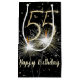 Gold sparkler on black background with gold confetti for 55th birthday.