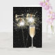 Party sparklers with gold confetti and white wine in stemware on black for 55th birthday.