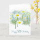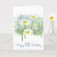 Close-up of white daisies in a country meadow with a watercolor abstract frame on white for a 55th birthday
