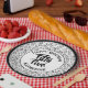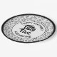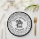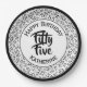 This over-the-hill design has a black and white random number pattern with a black  milestone number 55 repeated in varied sizes and angles over a white background.  There is a white circle in the centre for your text, and black and white rings around the rim.