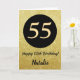 55th Happy Birthday Black and Gold Glitter Card with personalised name. For further customisation, please click the "Customise it" button and use our design tool to modify this template.