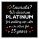 'Emerald? We deserve Platinum for putting up with each other for 55 Years' quote for a couple who got married 55 years ago or a couple renewing wedding vows on their emerald anniversary.