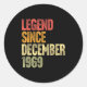 56 Year Old Legend Since December 1969 Retro 56th Classic Round Sticker