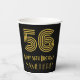 This Roaring Twenties inspired and vintage appearance birthday paper cup design features a large art deco inspired style number “56”, along with the birthday greeting message “Happy 56th Birthday,” and a personalised name. It also has a black-coloured background. Birthday themed paper cups like this might be used at a party celebrating somebody’s fifty sixth birthday. [~Z0000546]