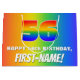 This joyful and cheerful birthday giftbag design features a large number “56” having a colourful rainbow spectrum inspired gradient pattern. It also features the message “HAPPY 56th BIRTHDAY,”, and a customisable recipient name. The background also features a fun multicolored rainbow spectrum inspired gradient pattern. Personalised giftbags like this might be used when giving gifts or presents in honour of somebody’s 56th birthday. [~Z0000577]