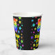 This colourful and fun birthday themed paper cup design features a large number “56” having a rainbow spectrum gradient inspired pattern. It also features the message “Happy 56th Birthday,”, and a custom name. The background features a vibrant and colourful pattern featuring many star shapes with different colours and sizes. Vibrant, colourful paper cups like this might be fun to have at a birthday party/celebration being held to honour somebody’s 56th birthday. [~Z0000540]