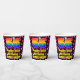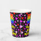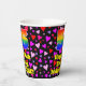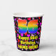 This cheerful and colorful birthday themed paper cup design features a large number “56” having a rainbow spectrum gradient inspired pattern. It also features the message “Happy 56th Birthday,”, and a customizable name. The background features a pattern of pink, purple, and red heart shapes. Loving, joyful paper cups like this might be fun to use at a birthday party being held to celebrate somebody’s fifty sixth birthday. [~Z0000548]