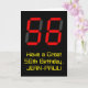 The front of this silly and geeky birthday themed greeting card design features a large number "56" having a red seven segment digital display style appearance, along with the message "Have a Great 56th Birthday," and an editable name, on a black colored background. The inside features a custom birthday greeting message, or could perhaps be cleared and left blank if a message is to be written by hand instead. A customizable birthday card like this might be a fun way to acknowledge somebody’s fifty sixth birthday. [~Z0000386]