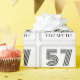 This Roaring Twenties inspired and retro look birthday wrapping paper design features a large Art Deco look inspired number "57", the message "Happy 57th Birthday,", a personalised name, and a border pattern consisting of lines. Wrapping paper like this might be used when wrapping gifts being given to somebody in celebration of their fifty seventh birthday. [~Z0000391]