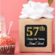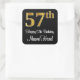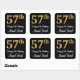 This stylish, sophisticated, and luxurious birthday themed square sticker design features a large ordinal number “57th” having an imitation/faux gold-like look, along with the birthday greeting message “Happy 57th Birthday,” and a customisable name in a script-style font. It also has a black-coloured background. Luxurious stickers this might be used when wrapping a gift or present in honour of somebody’s fifty seventh birthday, or perhaps might be handed out to the guests at a birthday party or celebration. [~Z0000517]