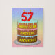This joyful and cheerful birthday-themed jigsaw puzzle design features a cartoon-style depiction of a three-tier birthday cake having number-shaped candles on top showing the age “57“, along with the message “HAPPY 57TH BIRTHDAY,”, and a custom recipient name. The background features a multicolored pastel rainbow spectrum inspired gradient pattern. A colourful, editable birthday puzzle like this might be given to celebrate somebody’s fifty-seventh birthday. [~Z0000621]