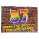 This colourful and fun birthday-themed gift bag design, inspired by street art and graffiti, features a large number "57" with a rainbow spectrum gradient inspired pattern, along with the message "Happy 57th Birthday,", and a custom name. The background features a brick wall inspired pattern. A vibrant birthday themed giftbag like this might be used when giving a gift or present in celebration of somebody’s 57th birthday. [~Z0000522]