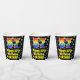 This colourful and fun birthday themed paper cup design features a large number “57” having a rainbow spectrum gradient inspired pattern. It also features the message “Happy 57th Birthday,”, and a personalised name. The background features a multicolored star field inspired pattern. Vibrant, colourful paper cups like this might be fun to have at a birthday party/celebration being held to celebrate somebody’s 57th birthday. [~Z0000540]