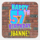This fun birthday-themed square sticker design features the message “HAPPY 57TH BIRTHDAY,” having a vibrant, colourful, graffiti-inspired look, plus a personalised recipient name. The background features a pattern inspired by the look of a brick wall. Fun, vibrant, personalised stickers like this might be given as a birthday gift, or used while wrapping gifts, or perhaps used as a birthday party decoration when celebrating somebody’s 57th birthday. [~Z0000535]