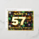 The front of this exciting fifty-seventh birthday party foil invitation postcard design features an editable name, a large number “57th”, the message “BIRTHDAY PARTY!”, and a border. The background of the front has an eye-catching, multicolored bursting celebratory fireworks-inspired pattern. The back features personalised details about the event, such as the date, time, location, and any other information that may be relevant. Customised invitations like these might be a fun way to let guests/attendees know about a birthday gathering being held to celebrate somebody’s 57th birthday. [~Z0000609]