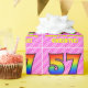 This happy and festive 57th birthday themed wrapping paper design features a large number "57" having a colourful pattern inspired by the look of a rainbow spectrum. It also features the message "Happy 57th Birthday,", and a customisable name. The background features a cheerful pattern of dark pink and light pink stripes containing loving pink heart shapes. Wrapping paper like this might be a fun way of wrapping a birthday present or gift being given to somebody who is celebrating their fifty seventh birthday. [~Z0000415]