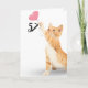 Gold tabby cat with pink heart balloon for 57th birthday on white background.
