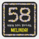 This floral, nature-inspired birthday themed square sticker design has the message “Happy 58th Birthday,” and a personalised recipient name. The large number “58” plus the border consist of flower icons. Fun birthday themed stickers like these might be distributed or used at a birthday party for somebody who is celebrating their fifty-eighth birthday, or perhaps used when wrapping gifts/presents or preparing invitations for such an event. [~Z0000652]