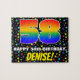 This colourful and eye-catching birthday themed jigsaw puzzle design features a large number “58” having a multicolored rainbow spectrum inspired gradient pattern. It also features the message “HAPPY 58th BIRTHDAY,”, and a personalised recipient name. The background features a joyful, multicolored star shapes pattern. A bold, customisable birthday puzzle like this might be a fun way to send birthday greetings to somebody who is celebrating their fifty-eighth birthday. [~Z0000607]