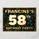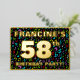 The front of this joyful and vibrant fifty-eighth birthday party/celebration foil invitation card design features a personalised name, a large number “58th”, the message “BIRTHDAY PARTY!”, and a border. The background of the front features a fun, colourful musical symbols and notes pattern. The back features personalised details about the event, such as the date, time, location, and any other relevant information. Personalised invitations like these might be a fun way to invite guests to a birthday gathering being held in celebration of somebody’s 58th birthday. These might be extra special for a music-themed birthday party. [~Z0000601]