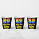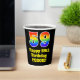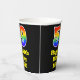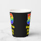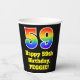 This colourful and exciting birthday themed paper cup design features a large number “59” having a rainbow spectrum gradient inspired pattern. It also features the message “Happy 59th Birthday,”, and a personalised name. The background is coloured black. Vibrant, colourful paper cups like this might be fun to use at a birthday celebration/party being held to celebrate somebody’s fifty ninth birthday. [~Z0000537]