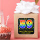 This fun, vibrant, and colourful birthday themed sticker design features a large number "59" having a rainbow spectrum gradient inspired pattern. It also features the message "Happy 59th Birthday,", and a personalised name. Part of the background has a pattern of various music notes and symbols having a variety of colours and sizes. Fun, customisable birthday stickers like this might be used as a birthday party decoration, or perhaps given as a birthday present, or perhaps be used when wrapping birthday gifts being given to celebrate a musician’s, a song composer’s, a singer’s, or somebody else’s 59th birthday. [~Z0000423]